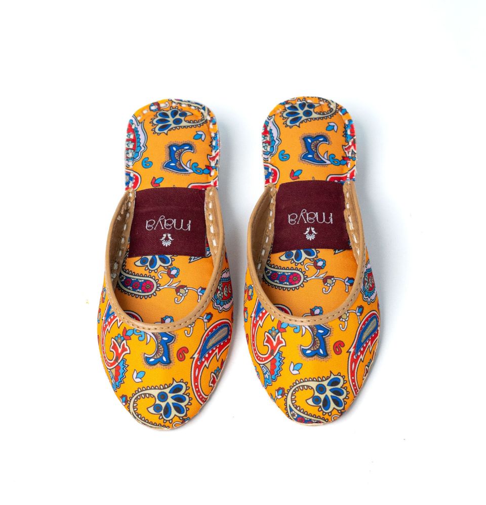 An aesthetically rich design is layered over this classy pale yellow khussa enriched with captivating prints in attractive hues. Style this formal backless khussa with variety of outfits this season.