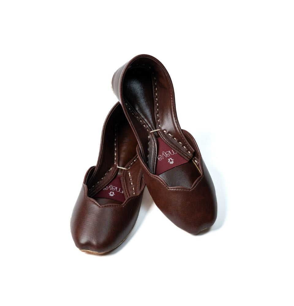 Presenting Mocha Sole by Maya – an elegant and handmade flat, perfect for those who seek both comfort and sophistication. This shoe features a rich, dark brown color that exudes warmth and versatility, making it a staple for both casual and semi-formal occasions. The design includes a closed, rounded toe and a sleek faux leather upper, offering a polished appearance with subtle texture. The soft, cushioned interior ensures all-day comfort, while the light-brown leather sole provides flexibility and grip for easy movement.