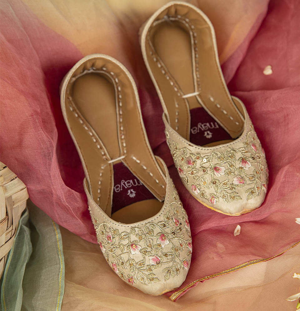 Rani II is delicately embroidered with shades of pinks and greens on a raw silk base to make your look subtle yet stylish. Addition of tilla and sitara adds the wow factor needed to complete the look.